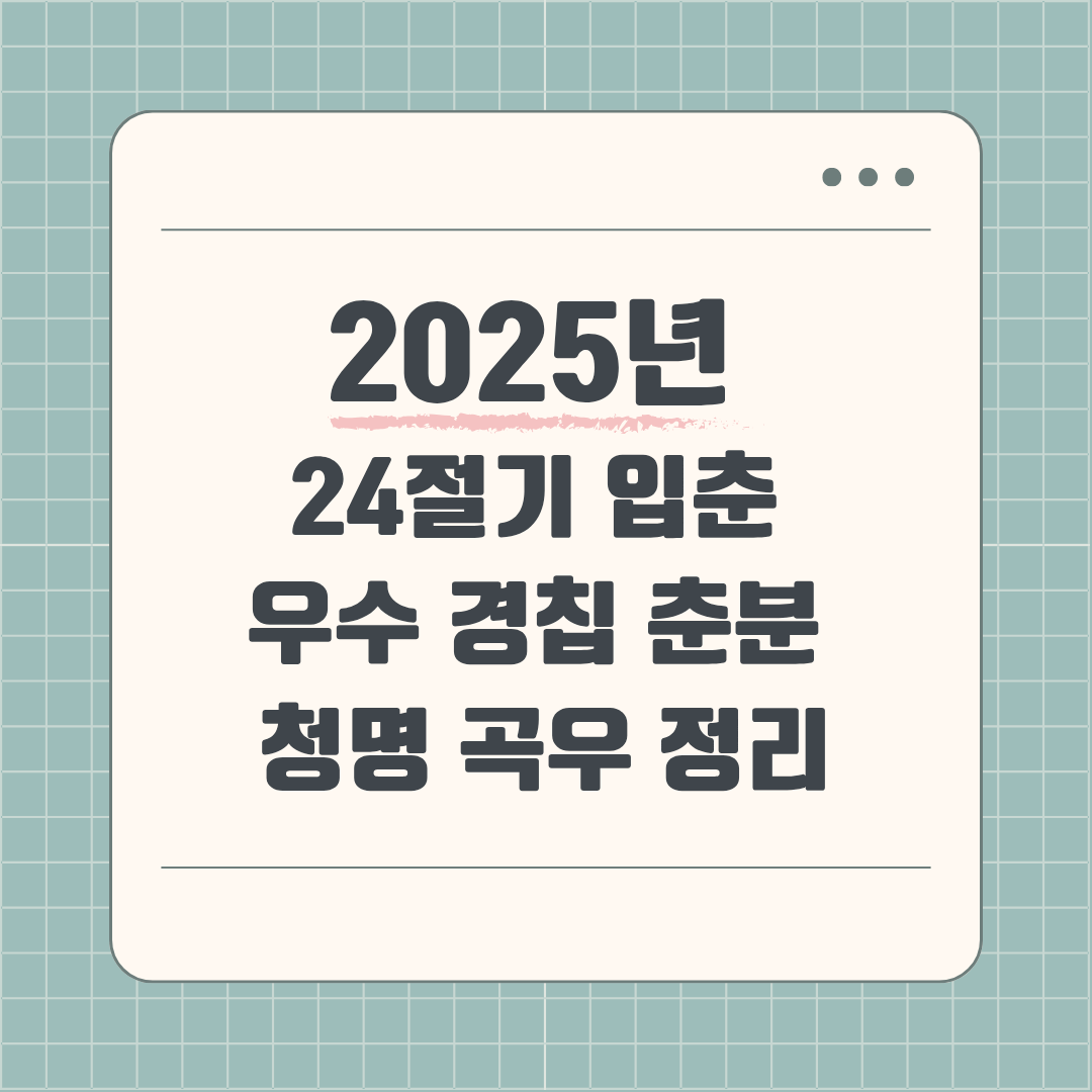 봄의 시작을 의미하며, 날씨가 조금씩 따뜻해지기 시작하는 시기입니다. 음력 1월 경, 양력으로는 2월 4일에 해당합니다.