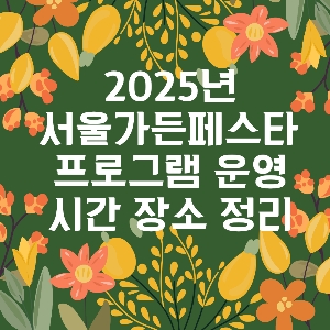 2025 서울가든페스타는 단순히 식물과 정원을 관람하는 것이 아니라, 자연과 사람, 예술이 어우러지는 특별한 문화 체험을 제공합니다. 도심 속에서 자연을 즐기고, 다양한 문화적 체험을 할 수 있는 이 기회를 놓치지 마세요. 봄날의 따스한 햇살 속에서 힐링의 시간을 보내며, 가족, 친구, 연인과 함께 기억에 남을 순간을 만들어보세요.