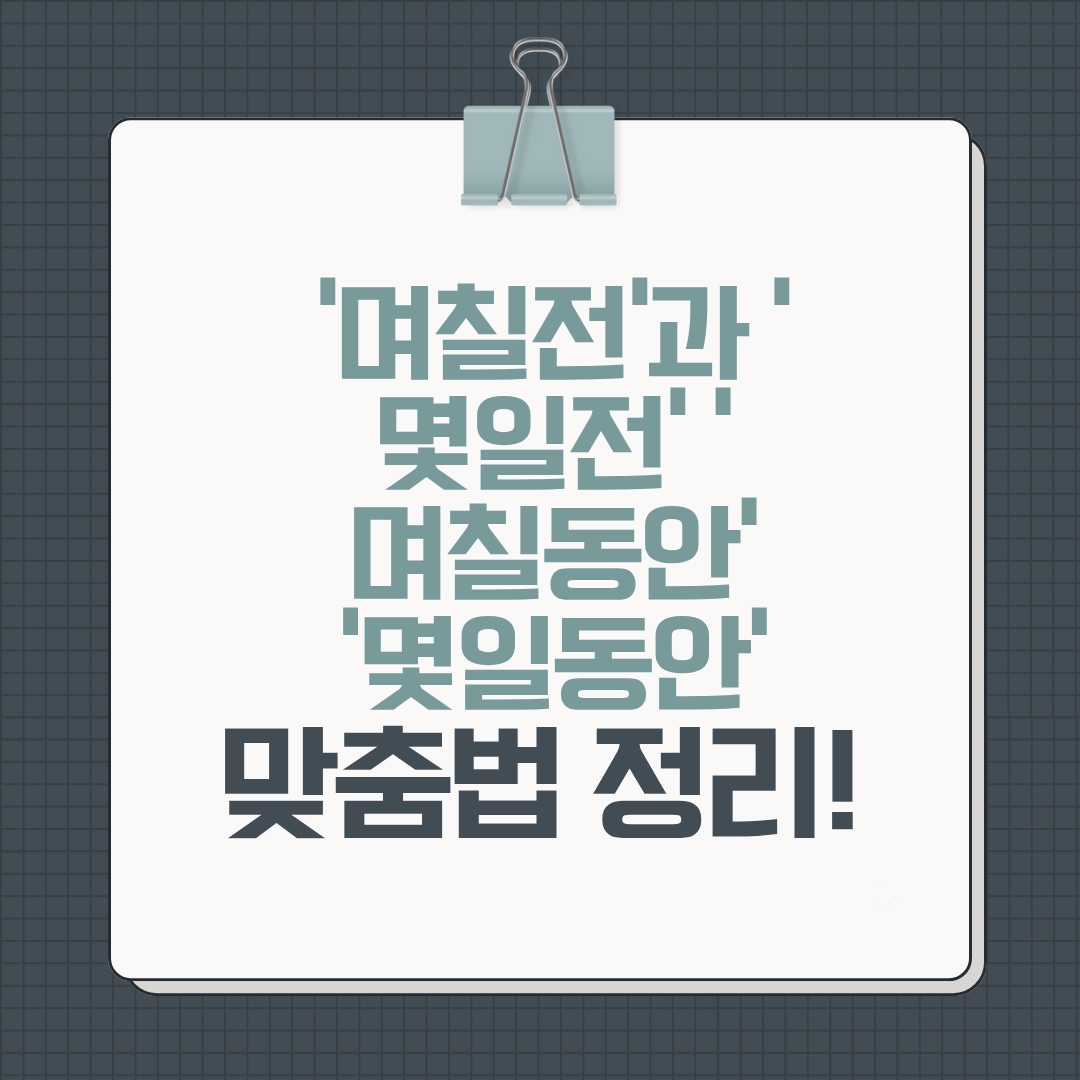 ‘며칠전’과 ‘몇일전’ ‘며칠동안’과 ‘몇일동안’ 맞춤법 정리! 헷갈리는 표현 완전 정복