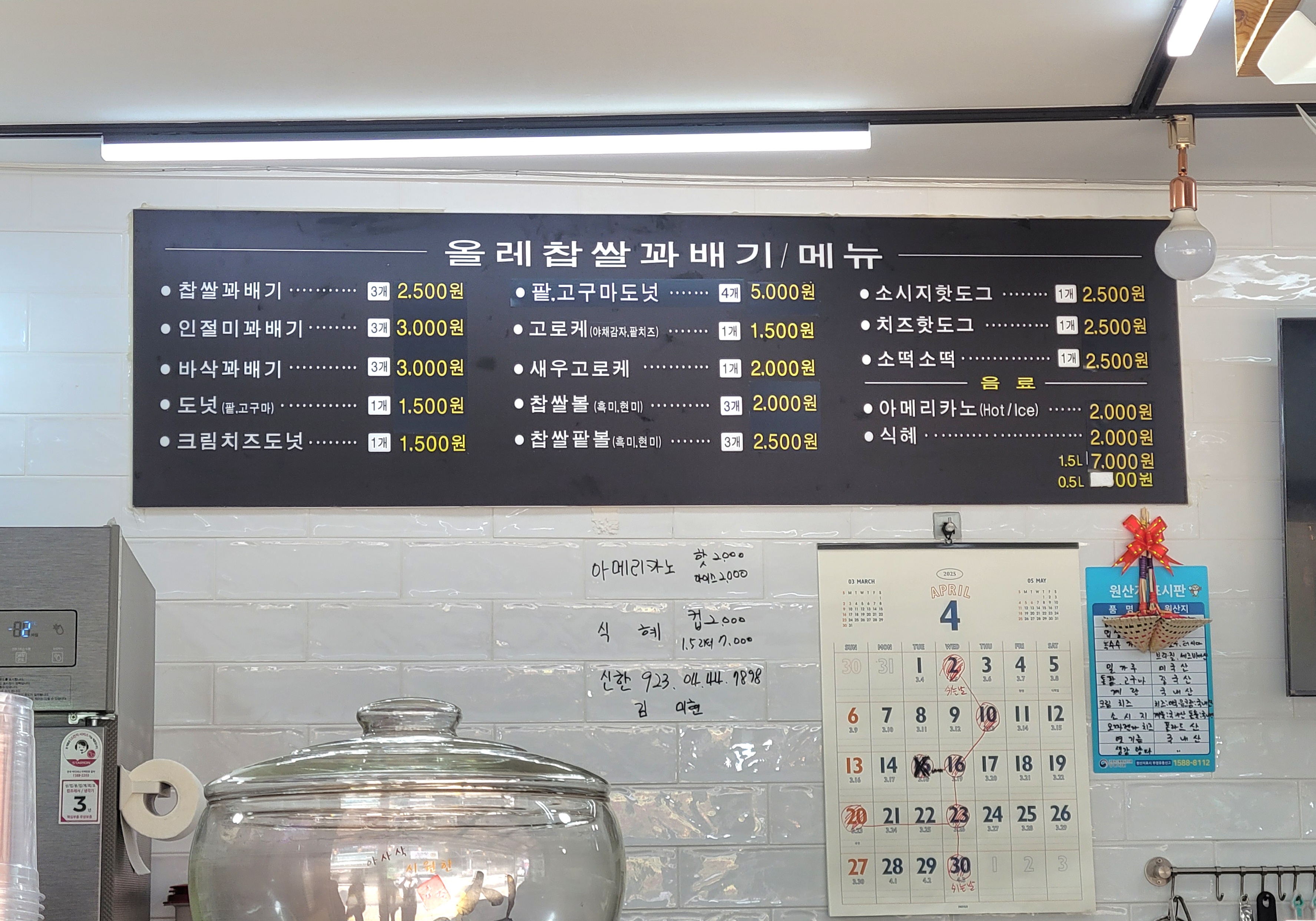 맛은 정말 만족스러웠습니다. 겉은 바삭하고 속은 쫀득한 찹쌀 꽈베기와 부드러운 팥앙금 도넛이 특히 맛있었어요. 가격도 저렴해서 가성비가 뛰어났습니다.