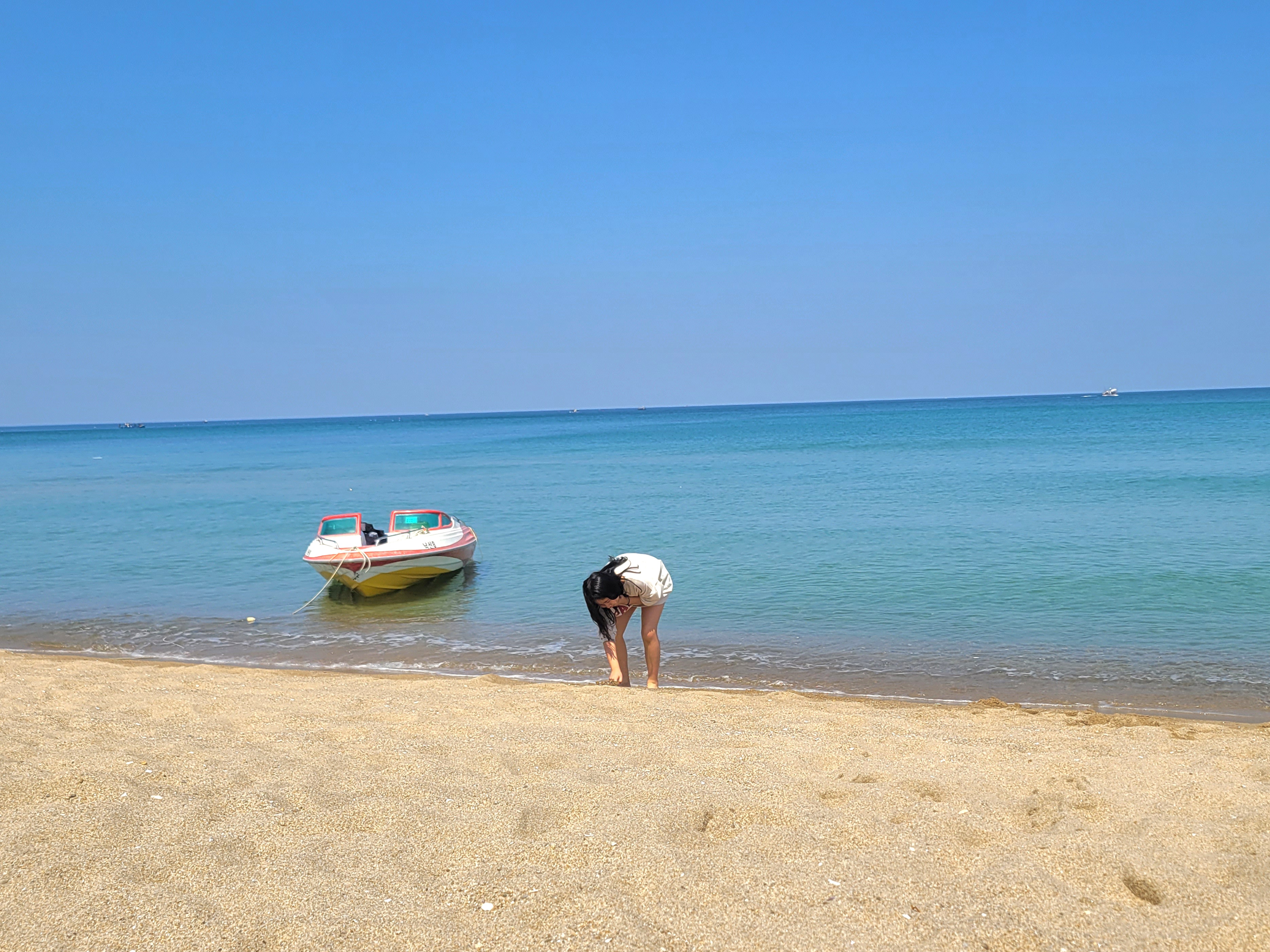 아이에게 바다에서 노는 건 언제나 큰 즐거움인가 봅니다. 물놀이도 잠깐, 모래에 글씨도 쓰고 핸드폰으로 직접 사진도 찍으며 즐거운 시간을 보냈어요.