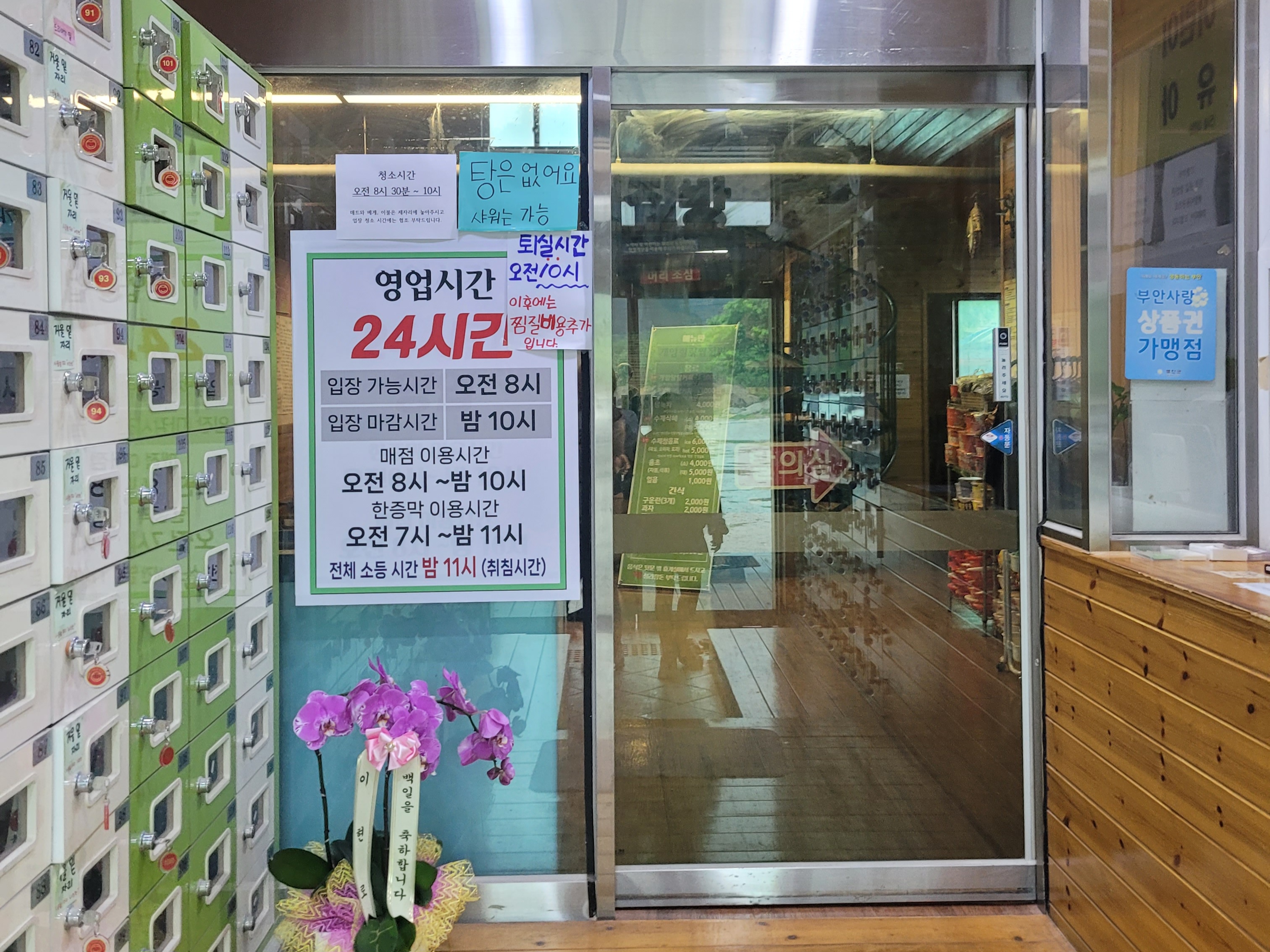 - 찜질방 운영: 오전 8시 ~ 익일 오전 (입장 마감 오후 10시)