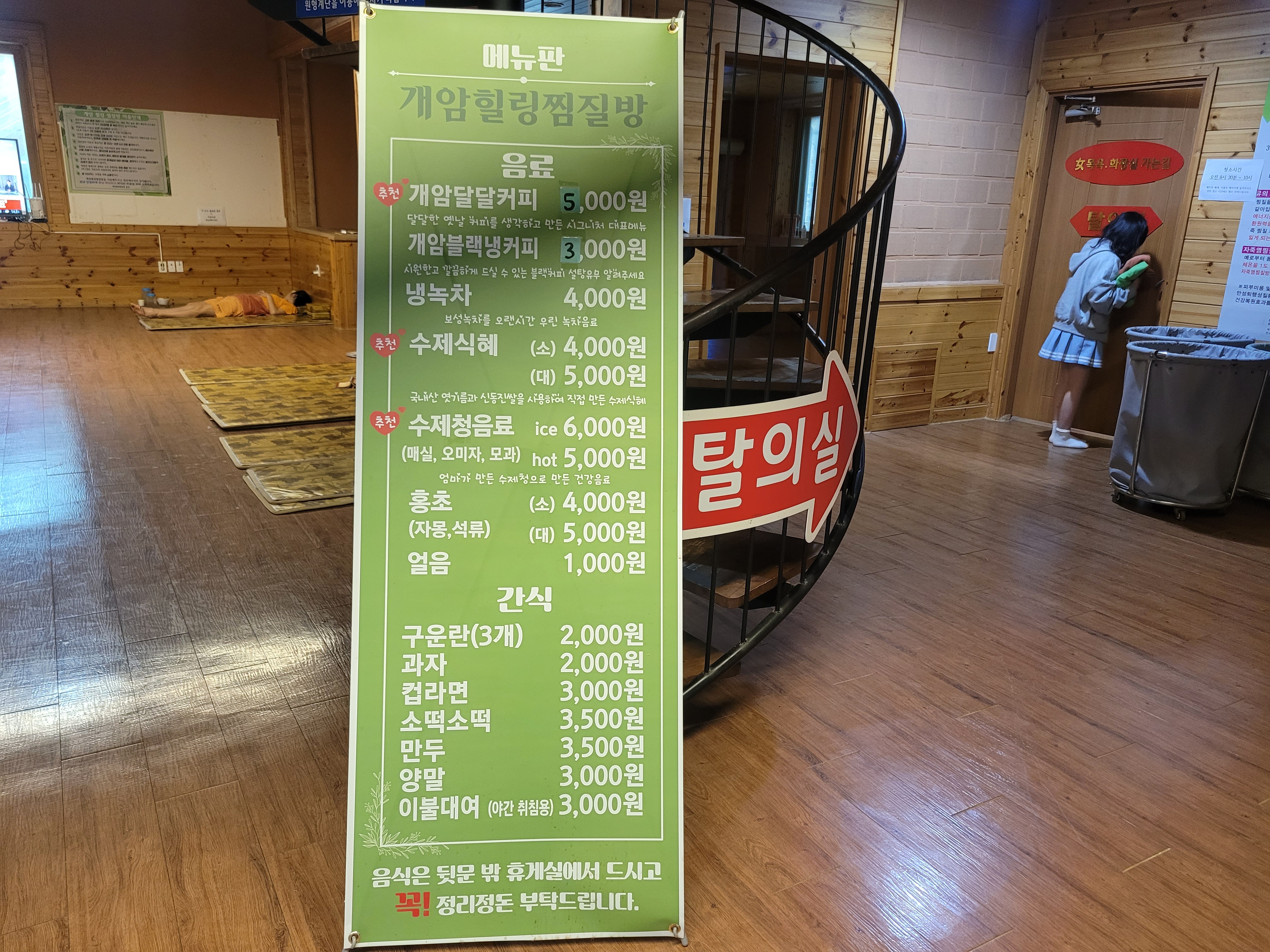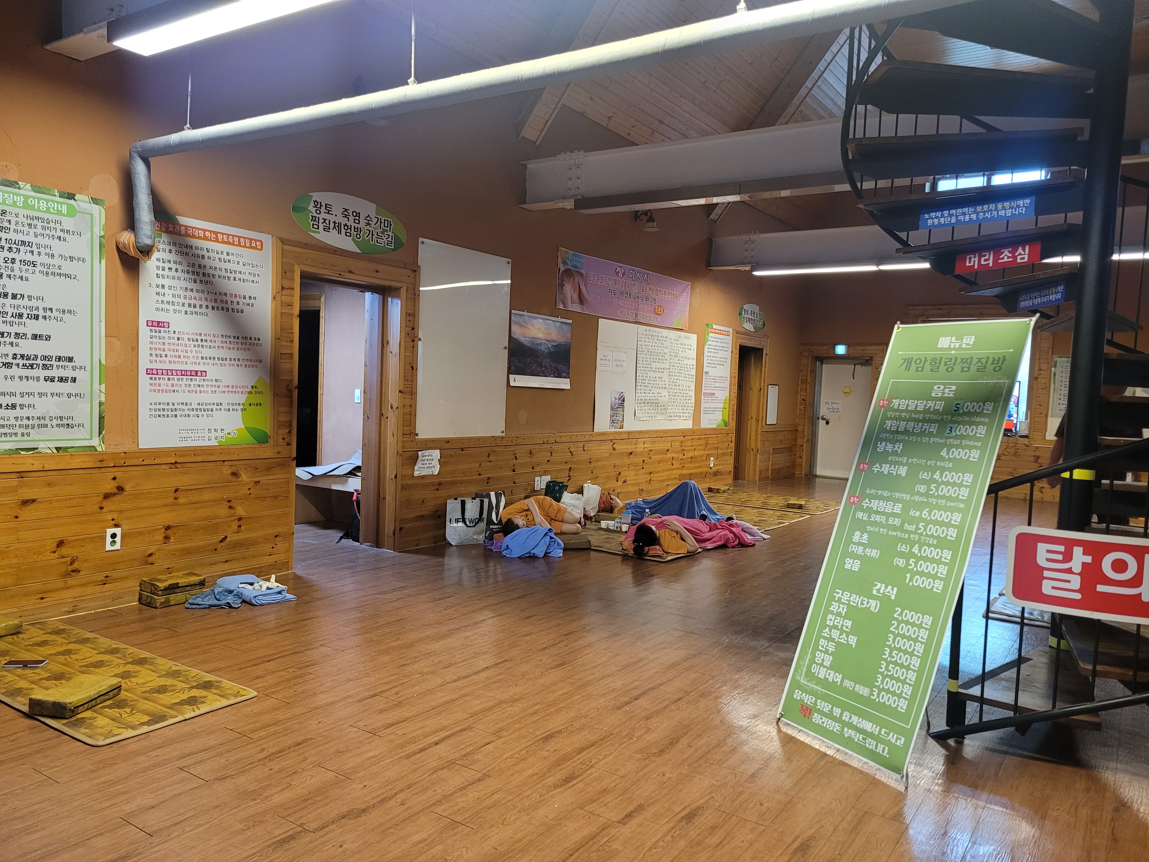 처음 도착했을 때 입구에 ‘펜션’이라는 간판이 먼저 보여 살짝 당황했어요. 찜질방이 맞나 싶었지만, 내부 구조를 보니 확실히 찜질방이었습니다. 요즘 코로나 이후로 많은 찜질방이 폐업했다는 이야기를 들었기에 걱정했는데, 다행히 정식으로 운영 중이었습니다.