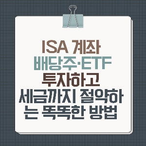 ISA 계좌는 자산을 안전하게 불리면서 세금을 아낄 수 있는 가장 손쉬운 절세 도구입니다. 특히 배당주·배당 ETF와 함께 활용하면 안정적인 수익 + 낮은 세금이라는 두 마리 토끼를 잡을 수 있습니다. 혹시 아직 ISA 계좌를 개설하지 않았다면 올해 안에 개설해두고, 고배당주와 월분배 ETF로 은퇴 준비와 절세 효과를 동시에 누려보세요!