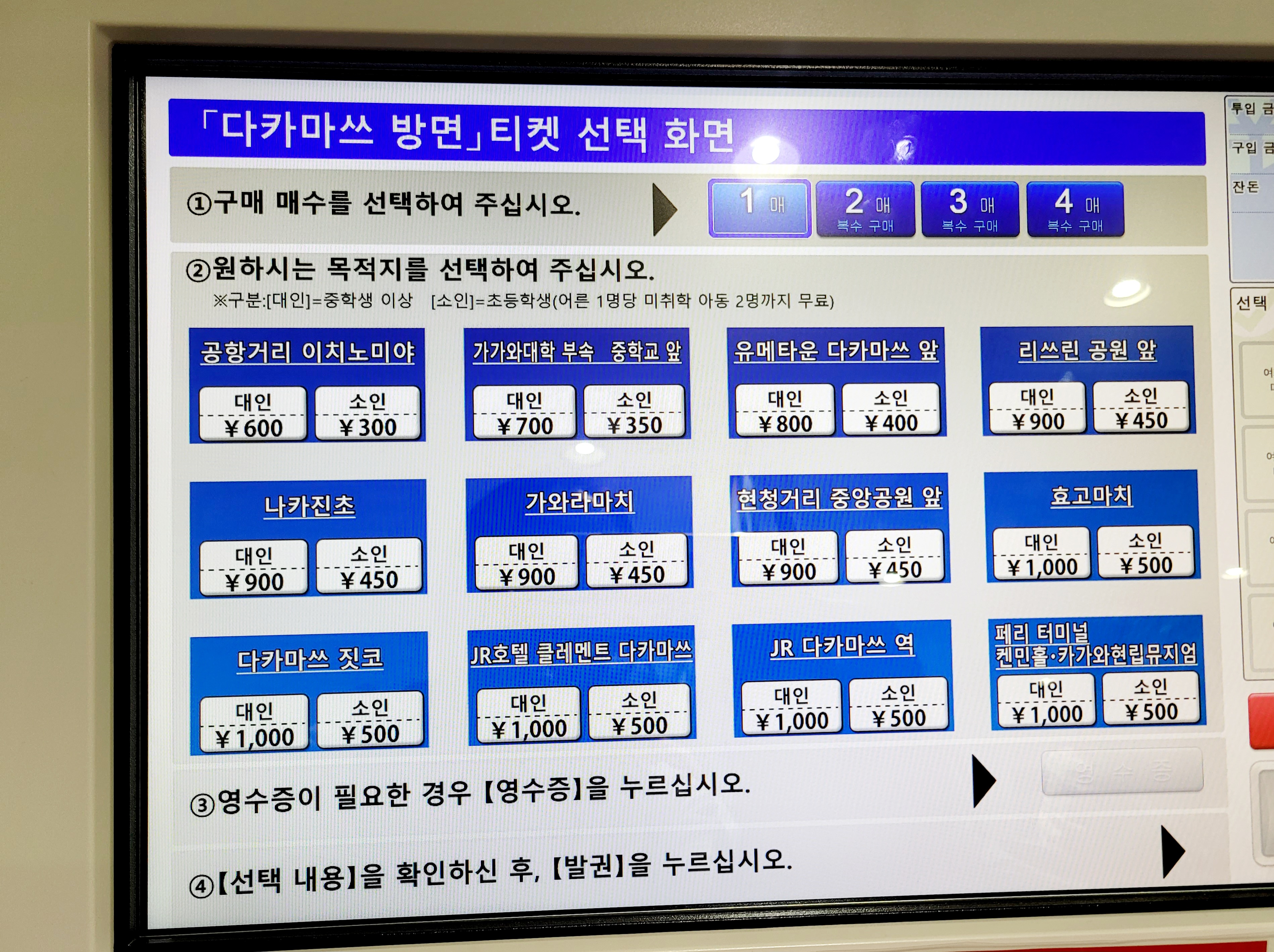 자동 발권기에는 한글 메뉴도 있어서 전혀 어렵지 않습니다.