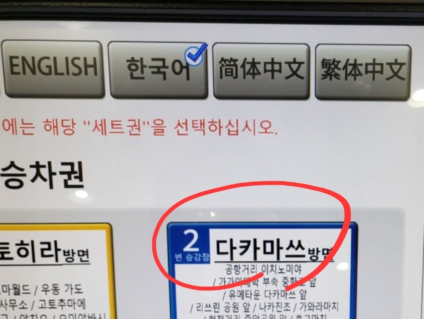 자동발권기에서 먼저 한국어 선택을 합니다.