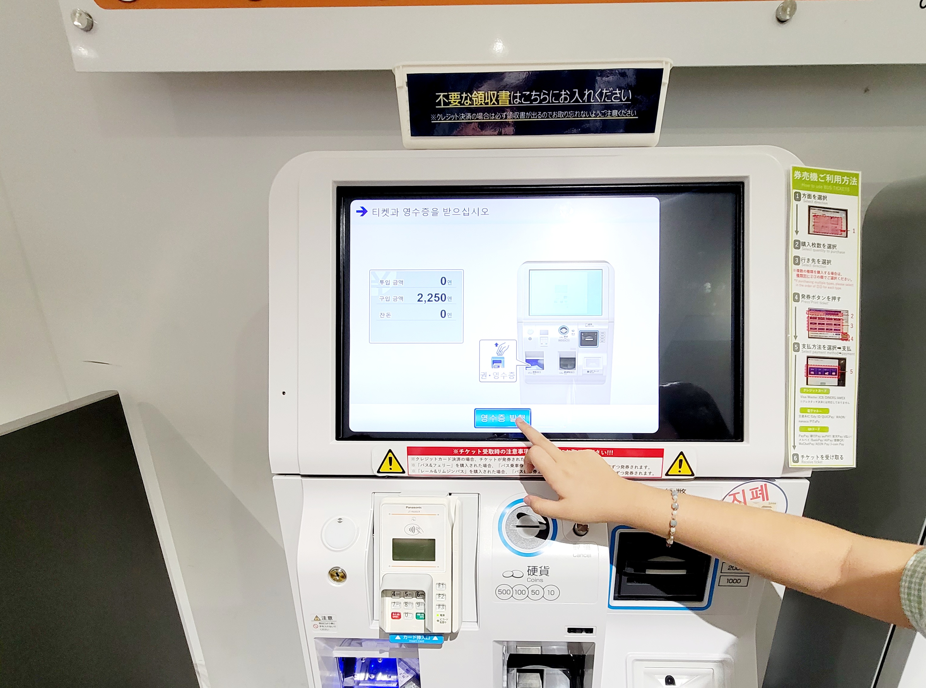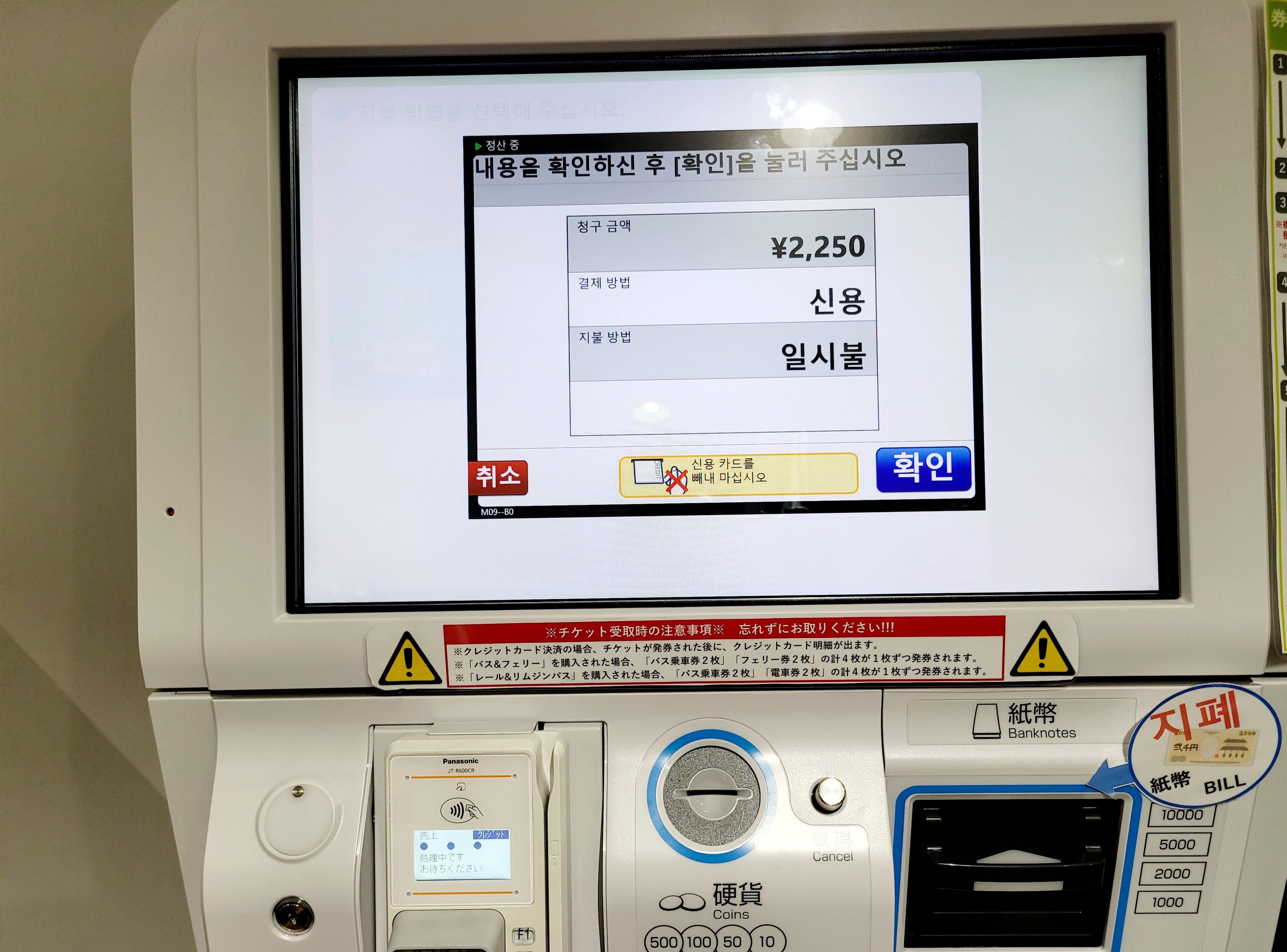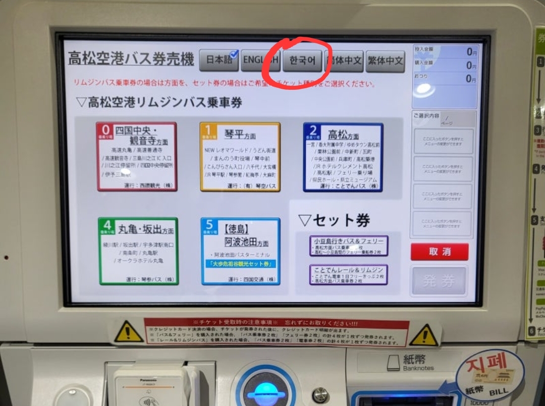 자동 발권기에는 한글 메뉴도 있어서 전혀 어렵지 않습니다.