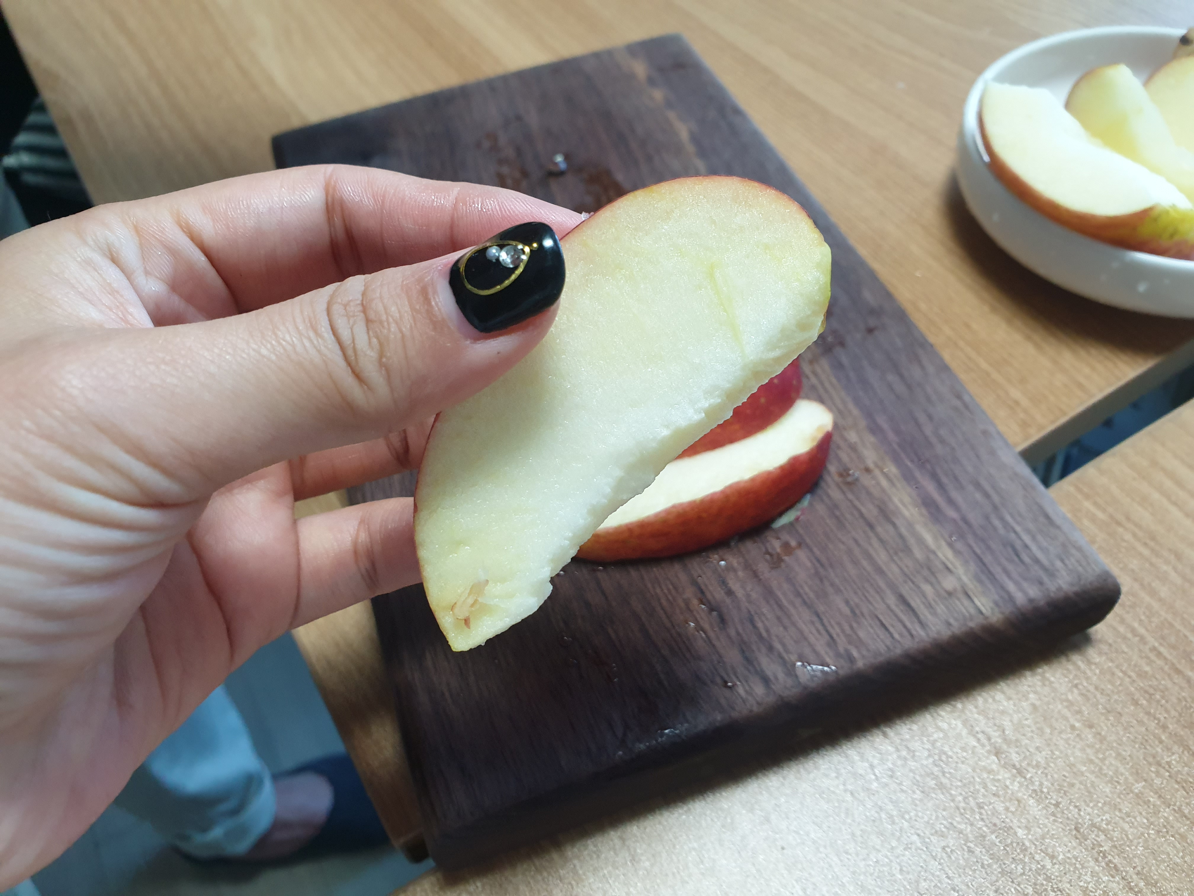 간만에 깍아준 사과인데, 안먹겠다고 하니 슬슬 짜증이 났지만 참았습니다. 그 전같았으면 사과하나는 순삭하고 먹었겠지만 점심을 먹고난 후이기도 하고, 간혈식 단식 중이기 때문에 하나를 다 먹기 그래서 사과을 보관해야했어요.