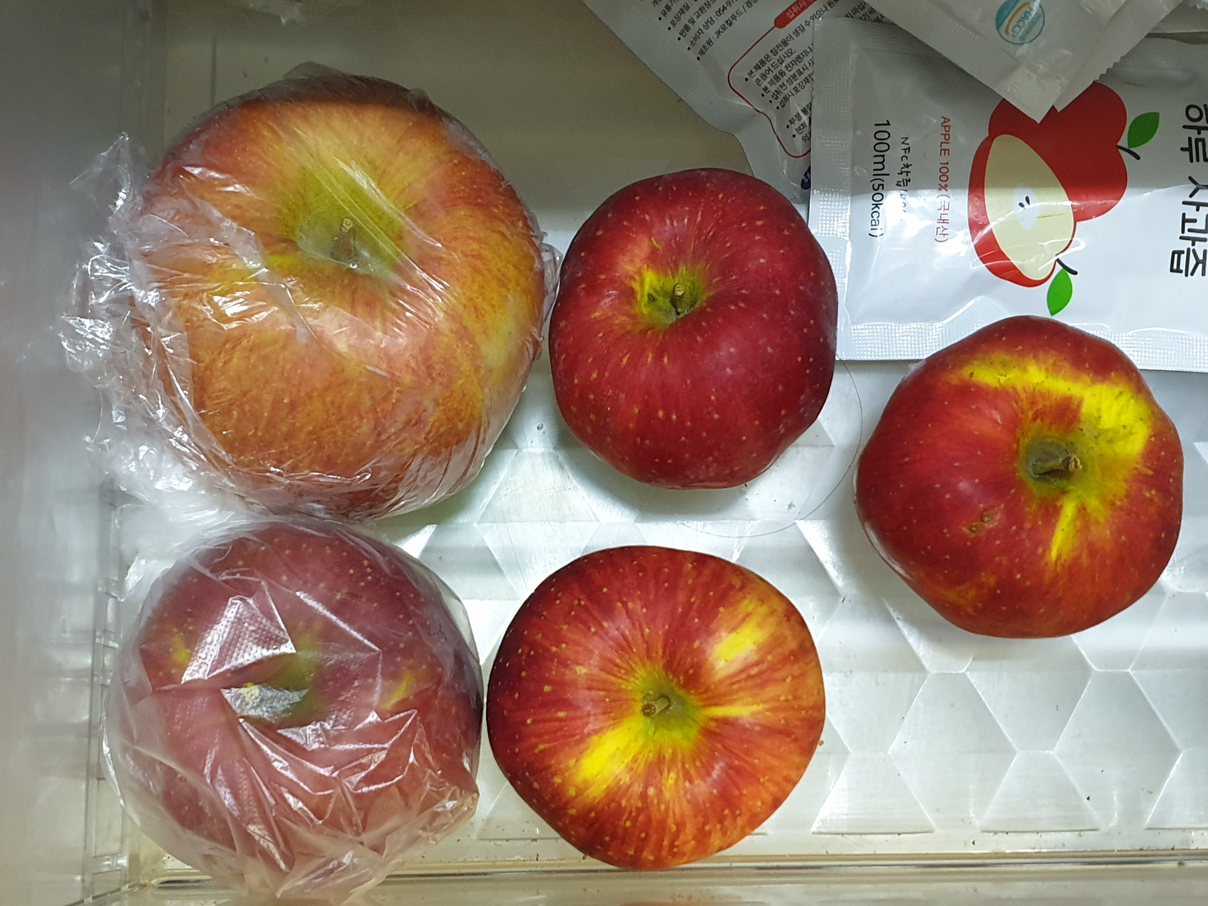 저는 금방 먹을 사과는 그냥 냉장보관을 했고, 오늘 먹을 사과는 그냥 냉장보관 후에 꺼내먹었습니다.