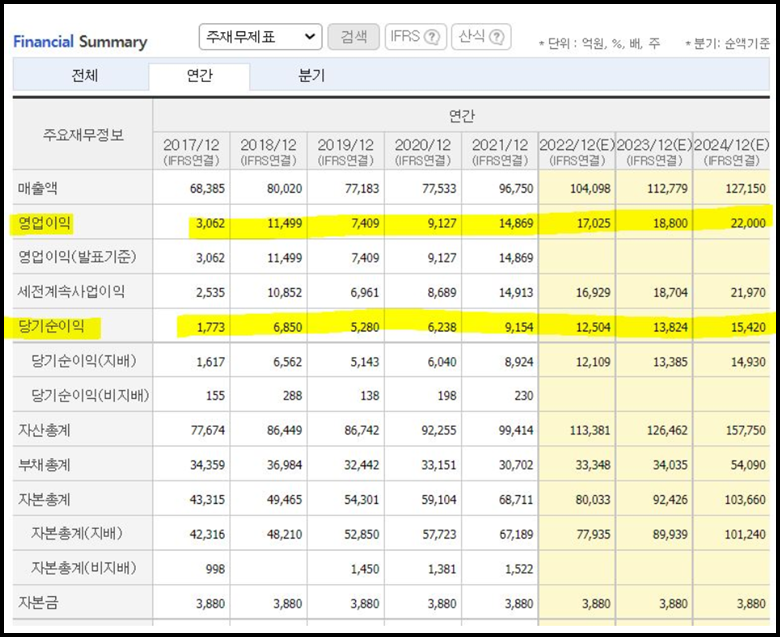 삼성전기는 안정성과 성장성을 고루 갖춘 기업입니다. 2021년의 경우 매출과 영업이익 모두 창사 이래 최대 실적을 달성하며 '올 타임 하이'급 결과를 도출해 냈습니다. 9년 동안 이어지던 실적 박스권을 탈출했다는 측면에서 삼성전기의 이 같은 실적인 꽤나 고무적인데요. MLCC와 기판 사업을 필두로 끊임없이 수요가 증가하고 있는 5G 스마트폰, 전기차, 서비 시장을 공략해 지속적으로 매출을 향상시키겠다는 복안을 가지고 있습니다.
