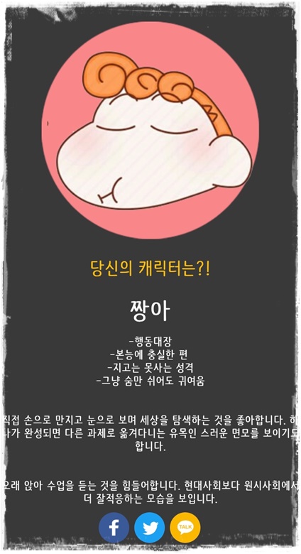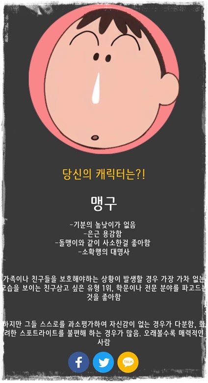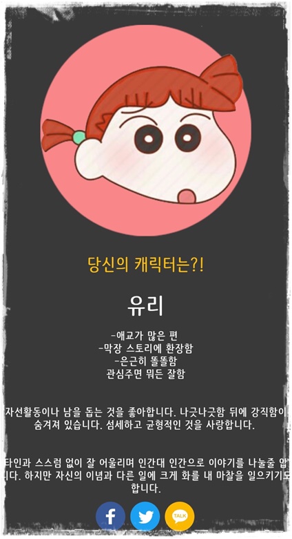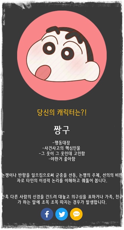 ● 짱구 캐릭터 테스트 결과