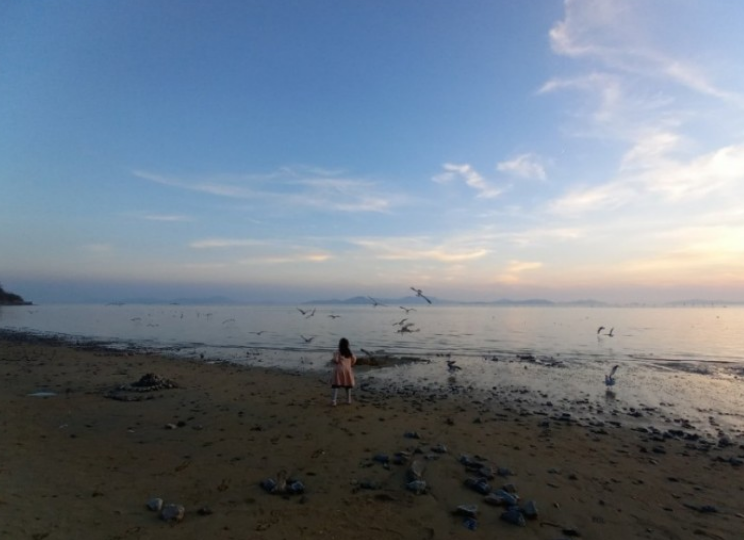 아쉬움을 뒤로하고, 딸이 갈매기에게 새우깡을 주는 모습만 바라보았어요.갈매기 너무 무서운데, 가까이 와도 따님은 하나도 무서워하지 않더라고요.