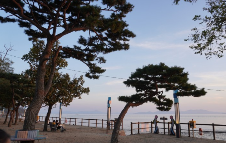 풍경이 아름다워서 좋았지만 무엇보다 갯벌이 마음에 들었습니다. 지금까지 갔던 갯벌들은 조개들도 많기도 하고 돌이 많았어요. 그래서 맨발로 절대로 다닐 수 없었죠. 아니면 너무 더럽고요.