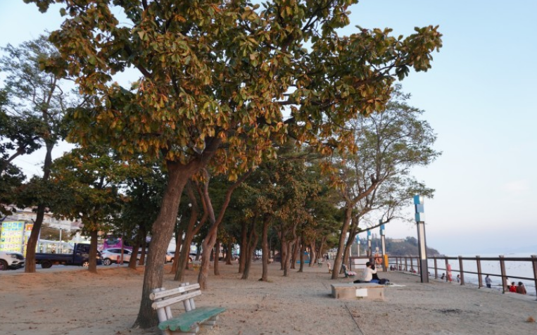 백사장 뒤로는 수백년 된 노송들이 있어서 운치가 더 있어보입니다. 이곳에서 사람들은 돗자리를 피거나 그늘막텐트를 가지고 와서 앉아있는 분도 계셨어요.