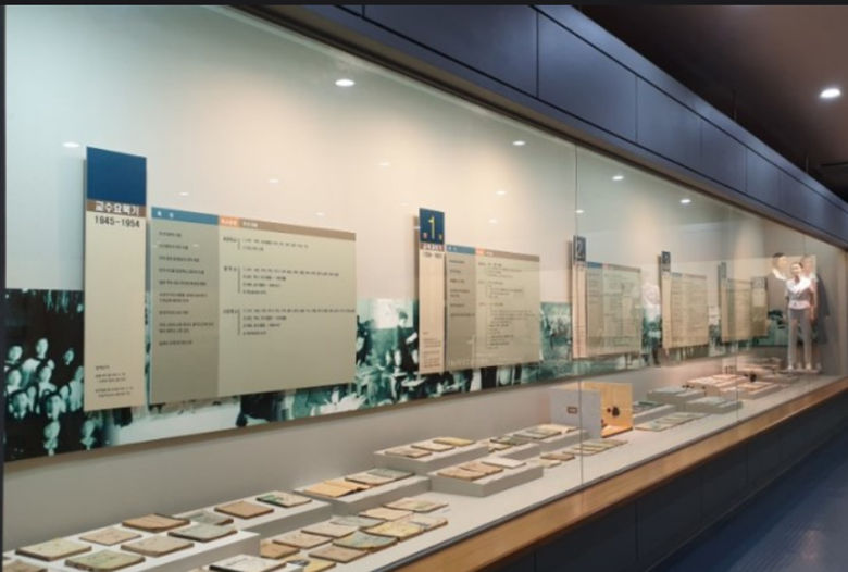 교육과정기별 교육과정의 변천사 및 그에 해당하는 교과서와 각 학교에서 만든 교육계획서를 전시하여 아이들의 볼거리를 제공해서 아이들이 내부에 전시되어 있는것을 살펴보면서 물어보기도 하더라구요.