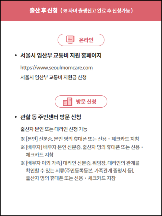 - 서울시 임산부 교통비 지원 홈페이지.