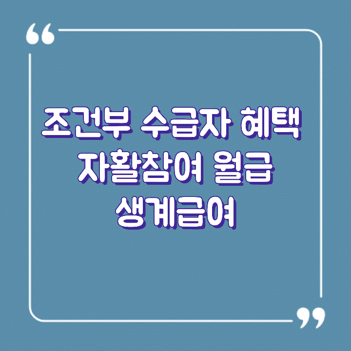 조건부 수급자 혜택 자활참여 월급과 생계급여에 대해서 알아보았습니다. 참고하시기 바랍니다.