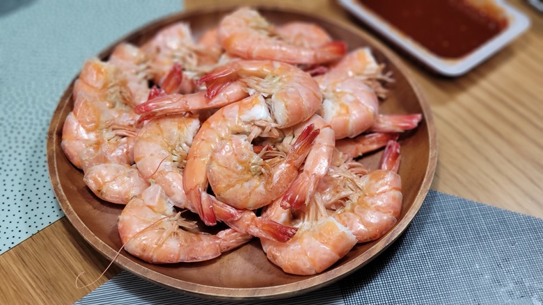 한접시 가득. 저는 먼저 새우머리를 잘라서 올려두었어요. 새우머리는 다른 것을 하려고 빼두었고, 아이들 먼저 먹으라고 했죠. 아이는 "엄마 너무 맛있는데!" 라고 하면서 열심히 까서 순삭하고 먹습니다. 딸은 간장에 남편은 초고추장에 찍어서 먹었습니다.