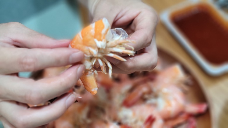 집에 도착했는데, 아직도 살아있는 새우때문에 얼마나 깜짝 놀랐는지 모릅니다. 래서 자연스럽게 남편이 담당을 하셨죠. 수산물시장이나 횟집에서는 꺼내서 바로 쪄주는 것 같은데, 검색을 해보니 내장을 제거를 해줘야한다고 하더라고요.