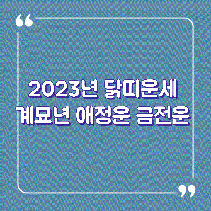 2023년 닭띠운세는 출생연도의 생초와 유년의 생초가 상충하는 충태세에 해당이 됩니다. 계묘년 닭띠는 대체적으로 운이 좋은 한해가 된다고 합니다. 하지만 몇가지 운이 따르지 않는 부분이 있는데, 그건 사업이나 취업을 하는 분에게는