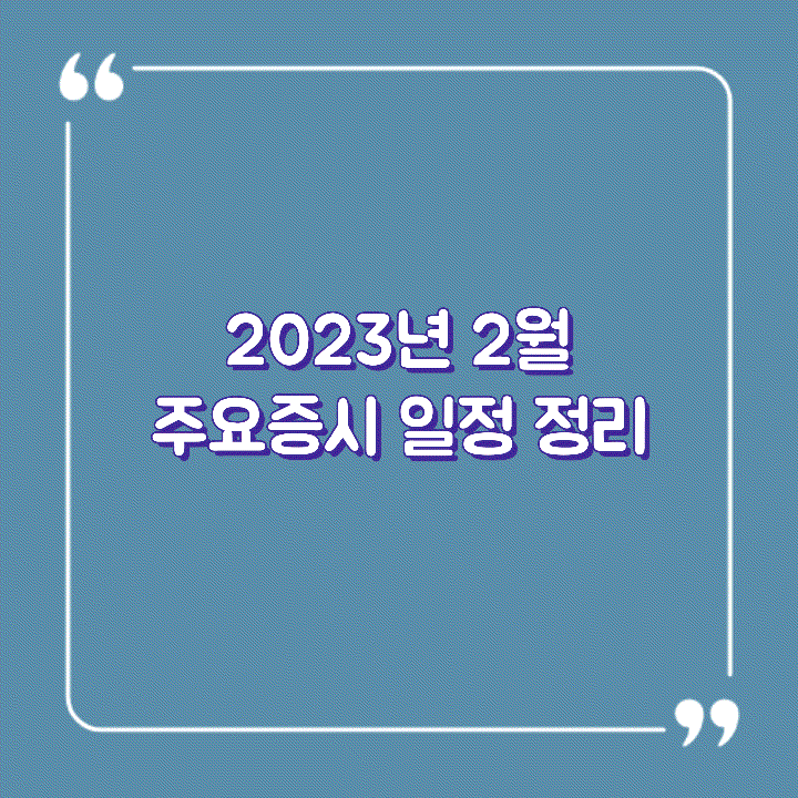 2월 첫째 주 미국의 금리 결정이 있습니다. 금리결정과 함께 FOMC기자회견이 있으며 2월 셋째 주에는 14일 1월 CPI지수 발표도 있는데, 아래의 2023년 2월 주요 증시 일정을 참고하시기 바랍니다.