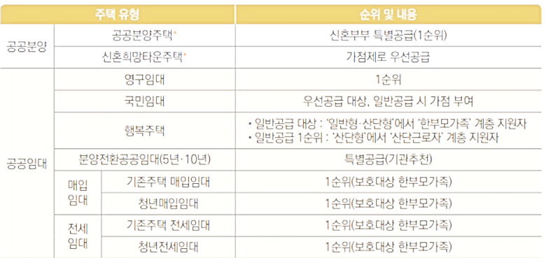 공공 주택의 경우 유형별로 한부모가정을 1순위로 임대하는 유형이 있으니 참고해 보시면 좋겠습니다. 마지막으로 에너지 바우처, 수도요금, 지역난방 등 저소득 한부모가족을 위한 요금감면 혜택들도 제공하고 있습니다.
