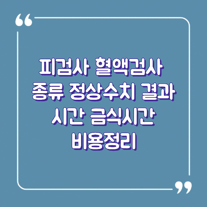 피검사 혈액검사 종류 정상수치 결과 시간 금식시간 비용정리