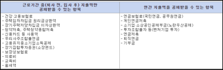 ◆ 근무기간에 따른 공제 불가 항목