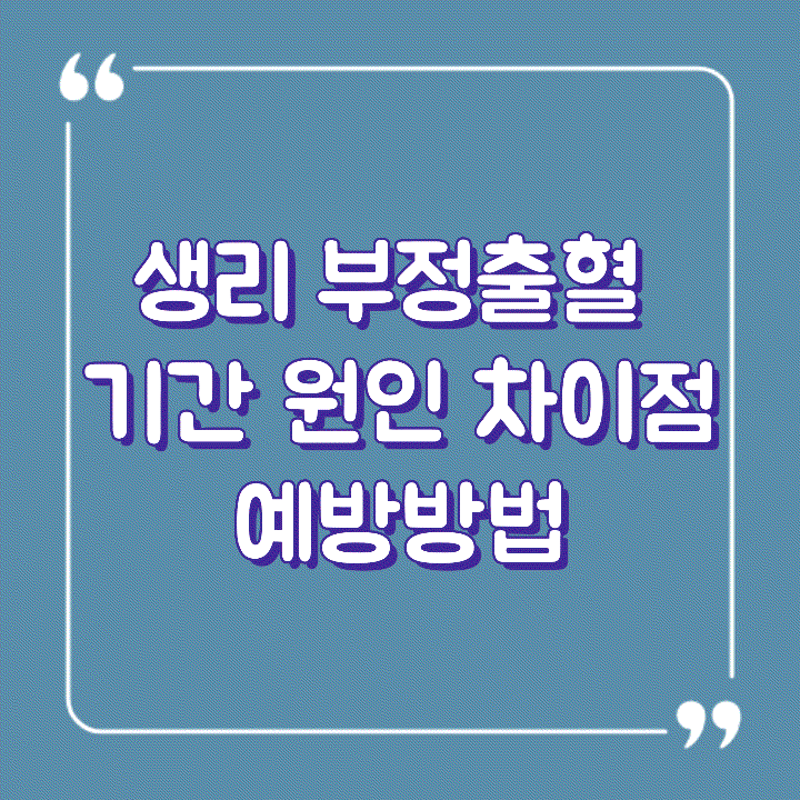 반면에 부정출혈은 생리가 아닌 다른 원인에 의해 발생하는 출혈을 말합니다. 이 출혈은 생리와 달리 불규칙적으로 발생하며, 양상과 기간도 다를 수 있습니다.