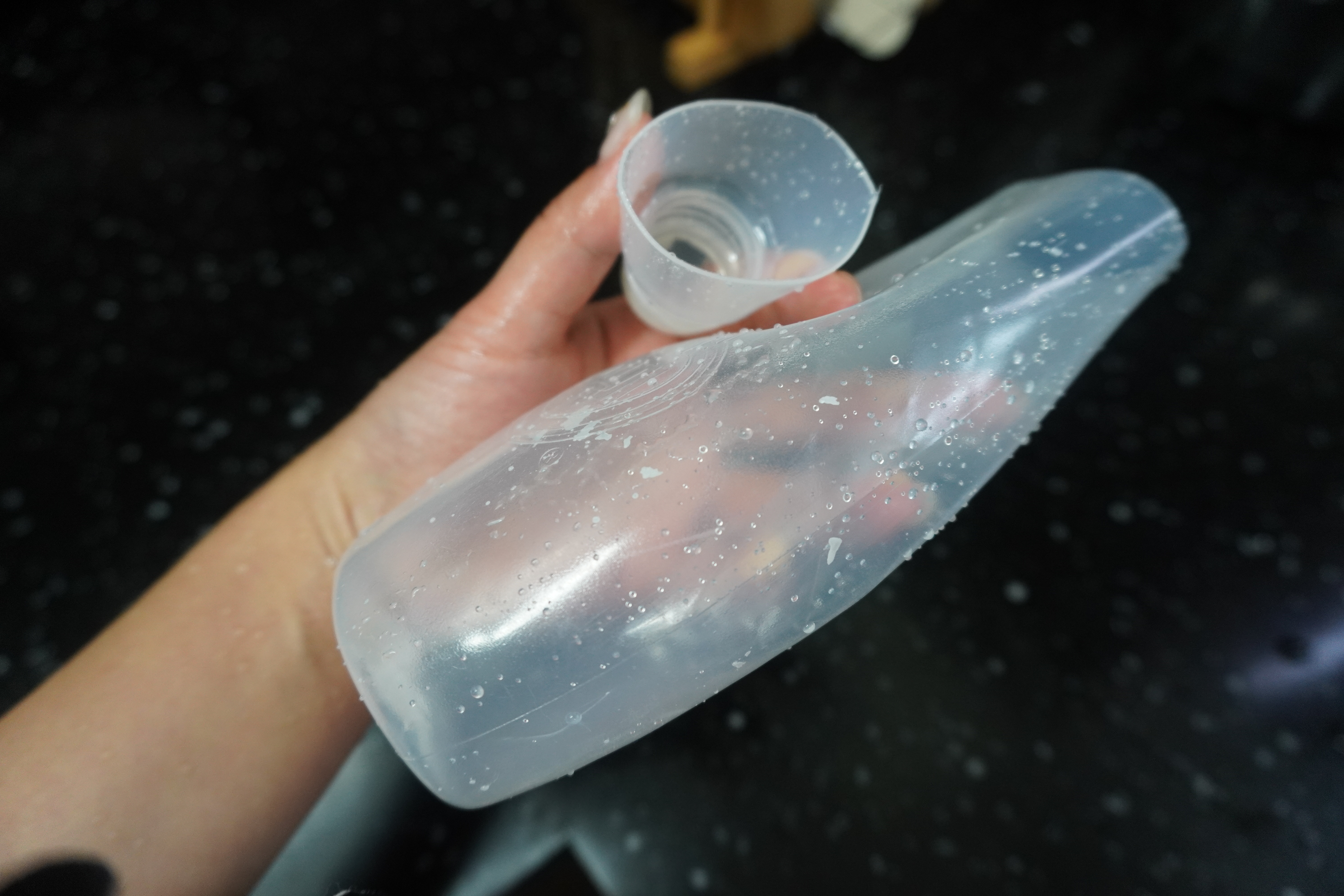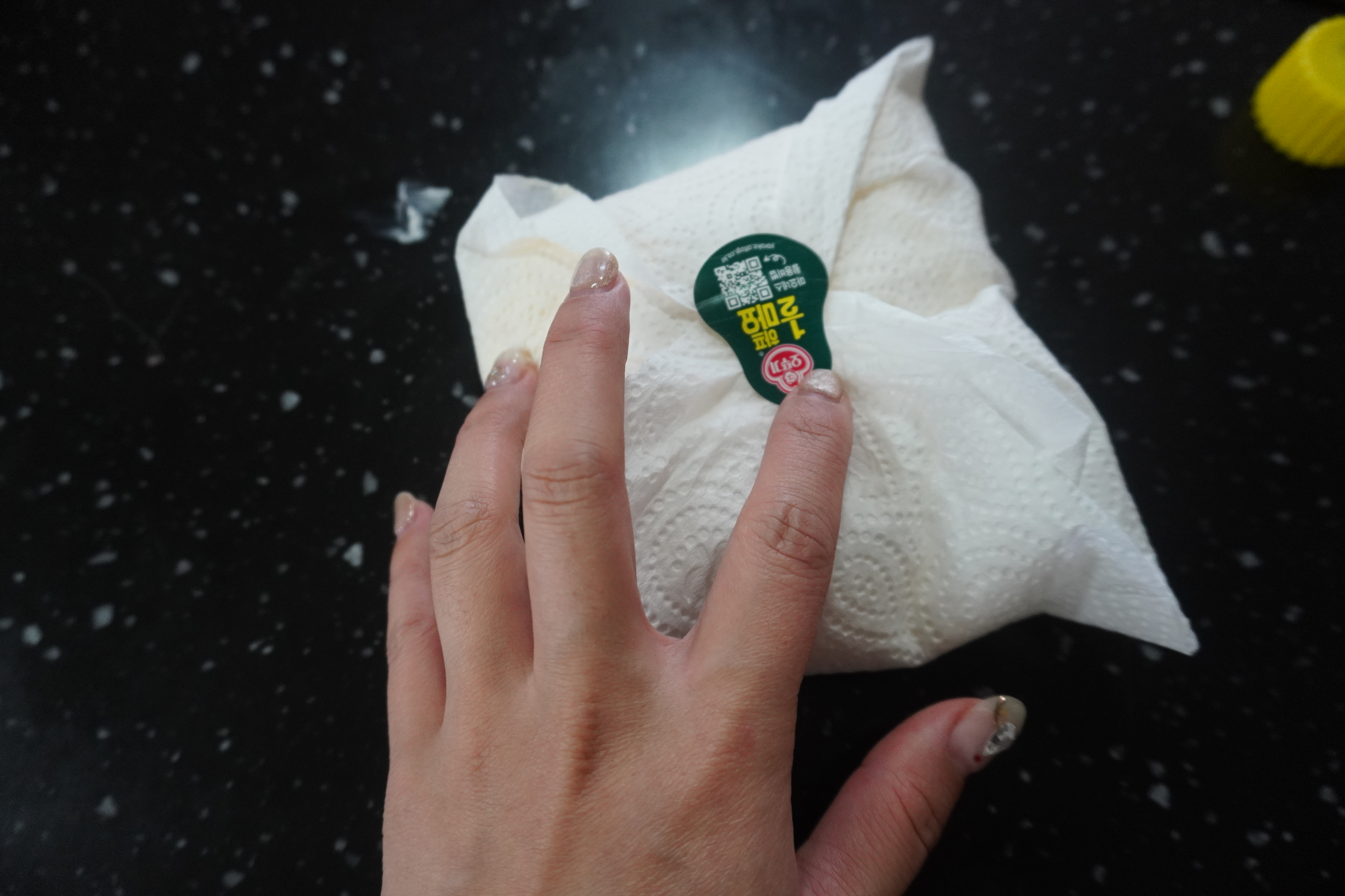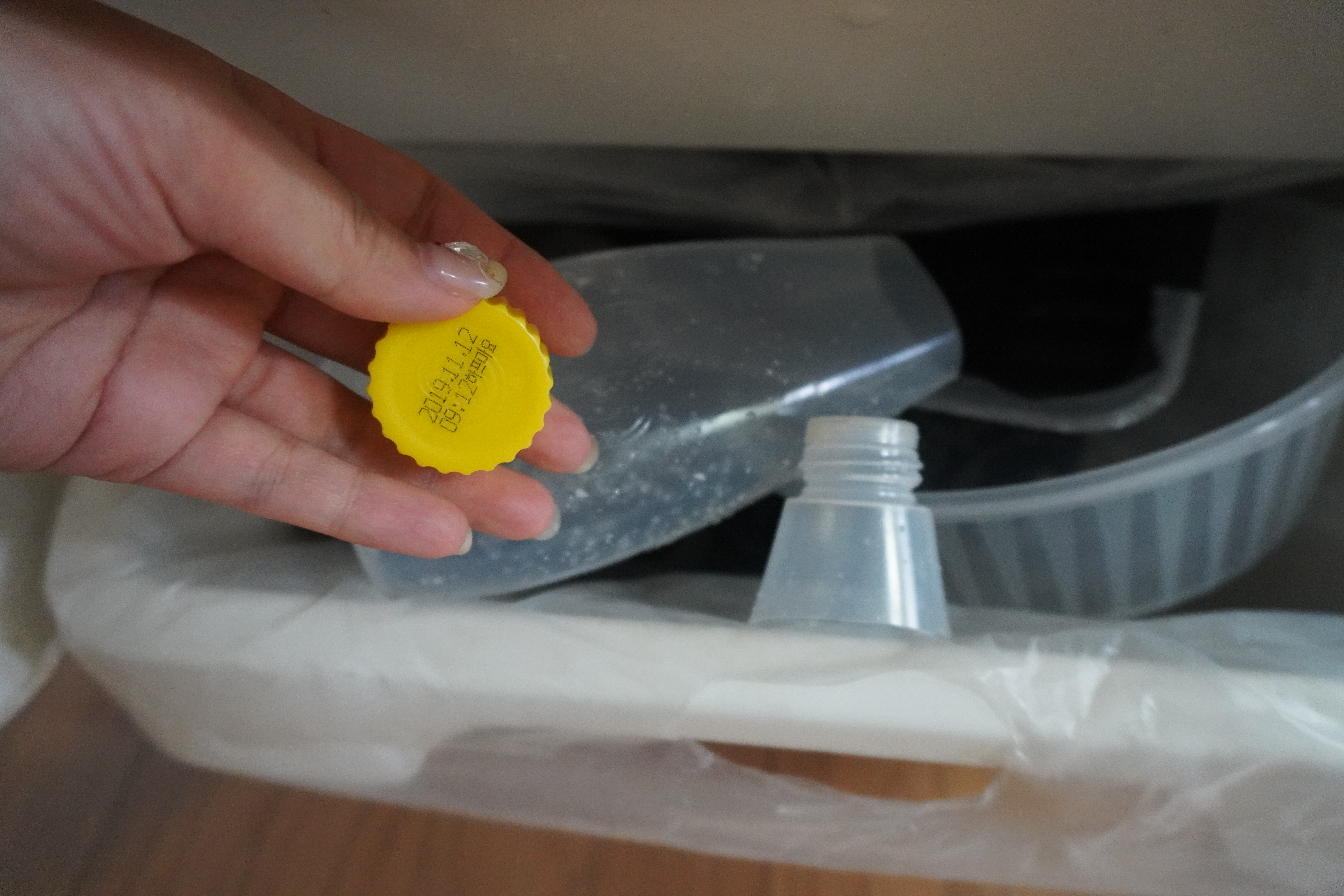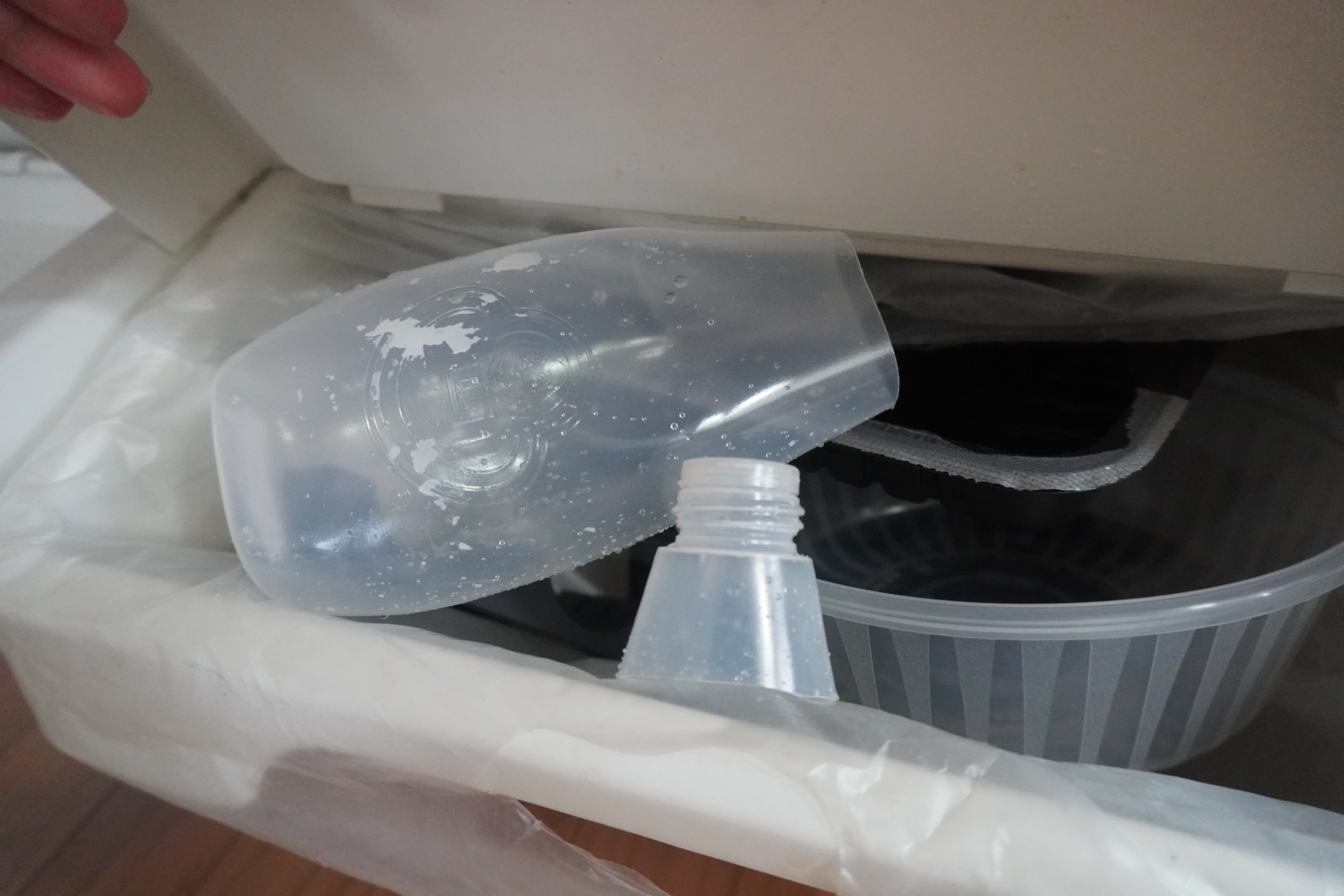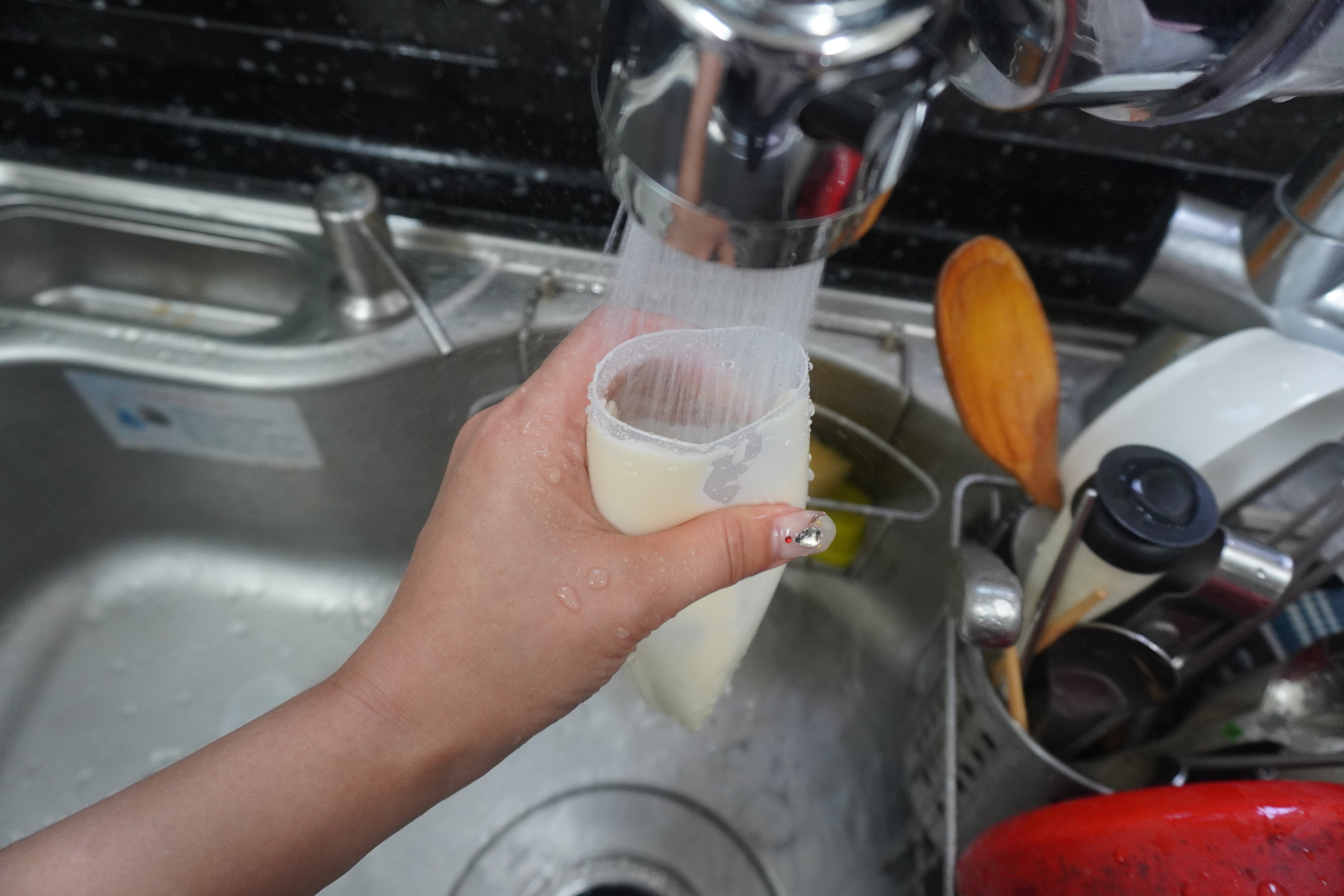 물로 유통기한 지난 마요네즈를 깨끗하게 닦아줍니다.