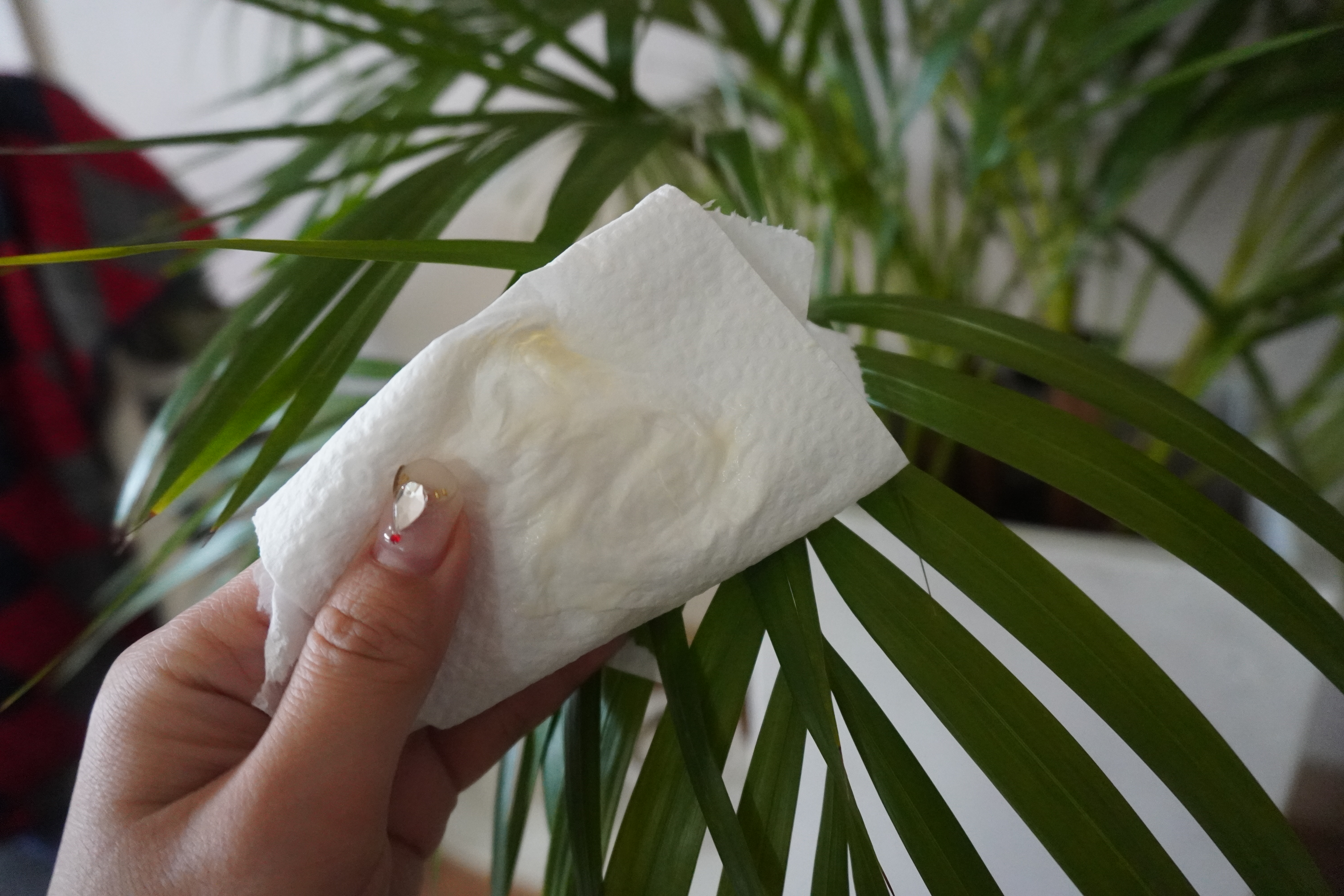 그럴때는 마요네즈를 조금 휴지에 싸서 잎을 닦아줍니다. 그러면 잎이 좀 더 반짝 거리는 역할을 합니다.