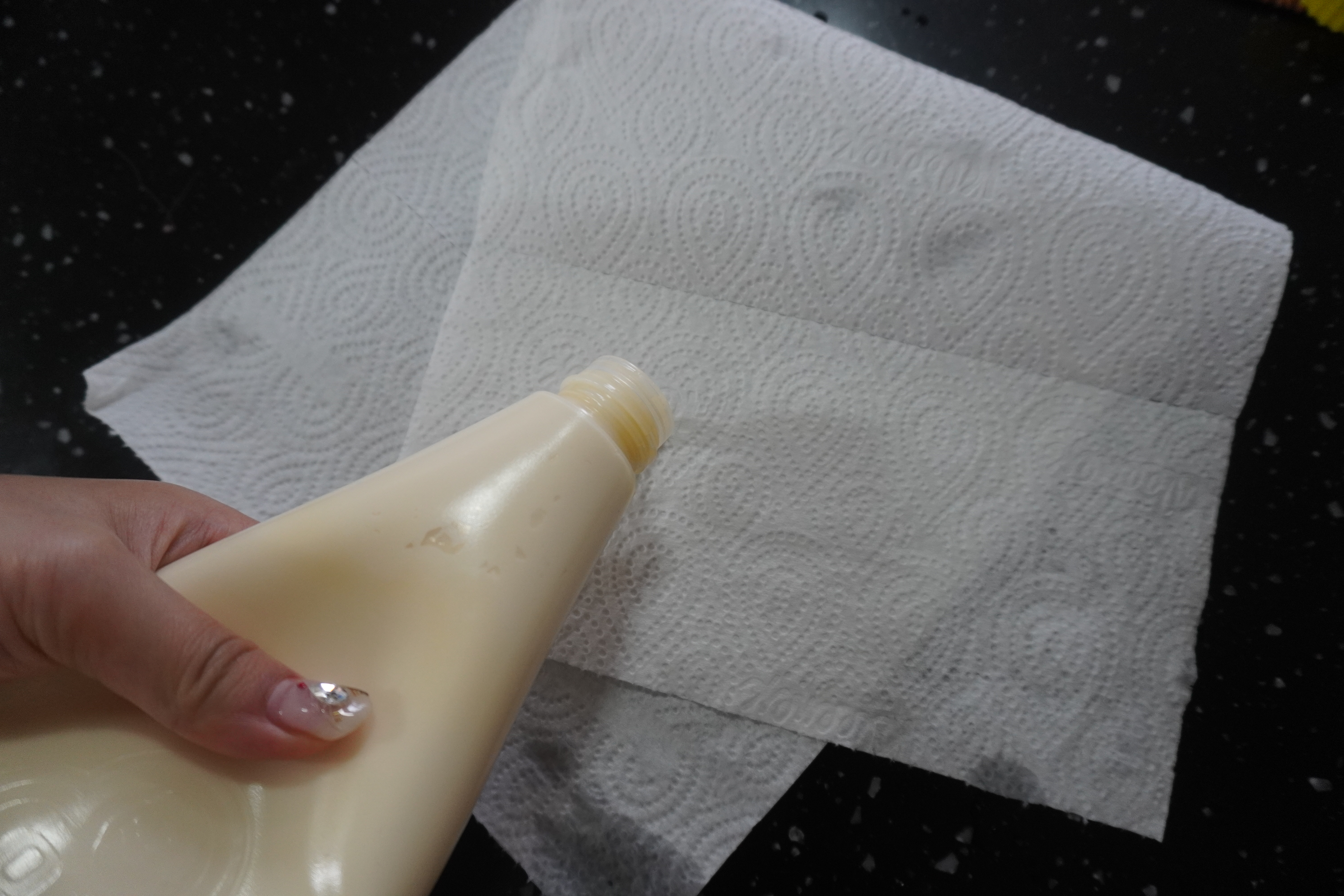 물로 유통기한 지난 마요네즈를 깨끗하게 닦아줍니다.