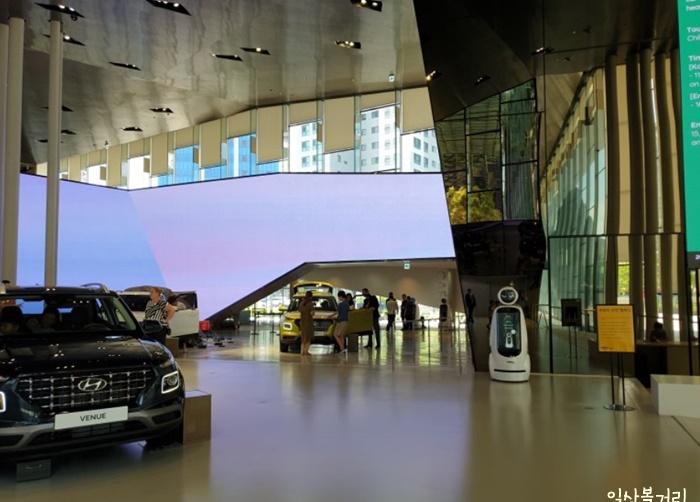 지금 스튜디오에서는 테마 전시를 하고 있어요. 쇼케이스에 들어서면 시시각각 변화하는 초대형 커넥트 월 영상과 테마별로 전시된 현대자동차가 어우러져 다이나믹한 광경이 펼쳐지고 있답니다. 알록 달록 하니 아이들이 우와~~ 이쁘다 라고 탄성을 지르더라구요