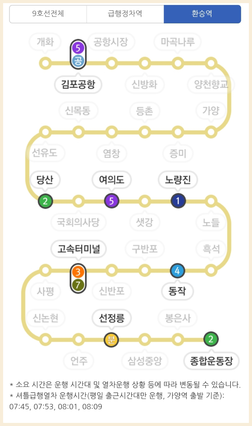 ◎ 9호선 환승가능한 역 / 한국Subway Line No.9