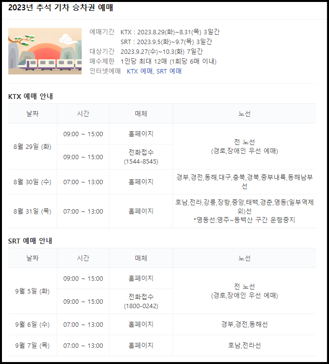 2023년 추석 코레일 예매 일정 팁에 대해서 알아보았습니다. 참고하시기 바랍니다.