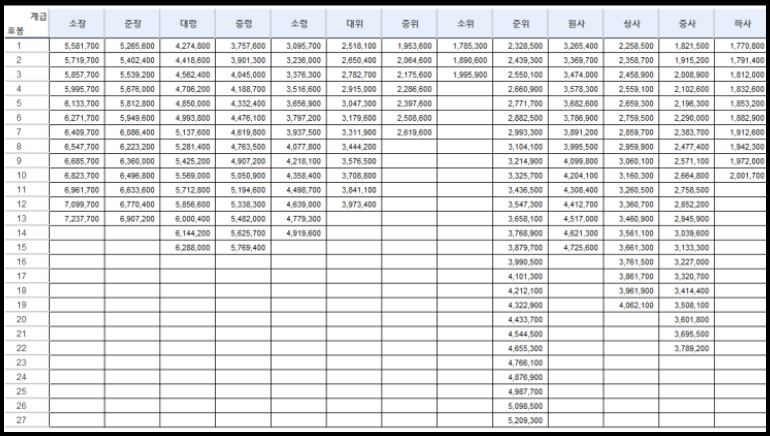 ◆ 2023 직업군인 봉급표