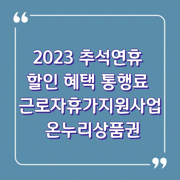 2023 추석연휴 할인 혜택 통행료 근로자휴가지원사업 온누리상품권에 대해서 알아보았습니다. 참고하시기 바랍니다.