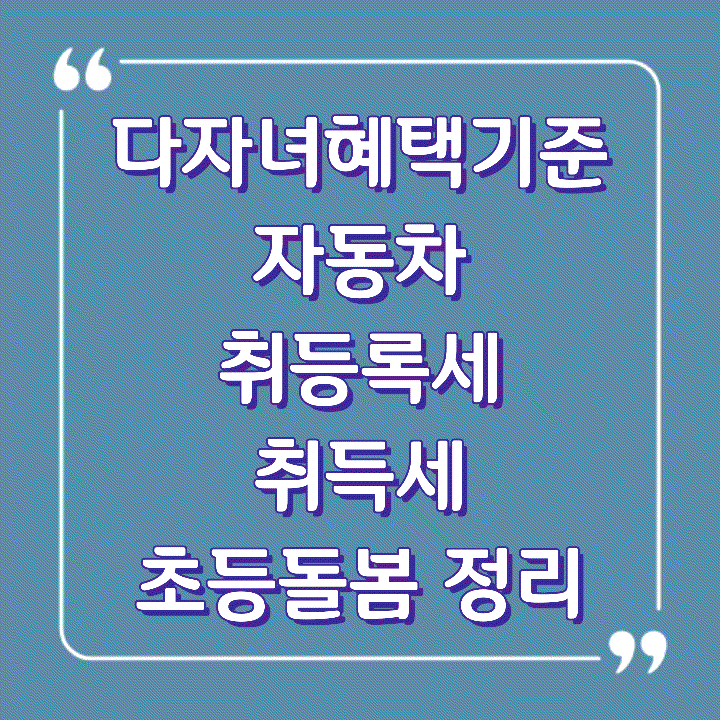현재 자동차 취득세 감면 혜택 지원대상은 18세 미만 자녀 3명 이상을 양육하는 양육자는 취득세를 감면 받을 수 있습니다.