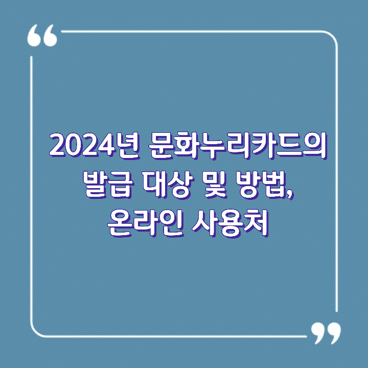 소외계층에게 지원되어 여가생활을 누릴 수 있도록 하는 정부의 정책 있는데요. 오늘은 2024년 문화누리카드의 발급 대상 및 방법, 온라인 사용처 등에 대하여 알려드리려고 합니다.