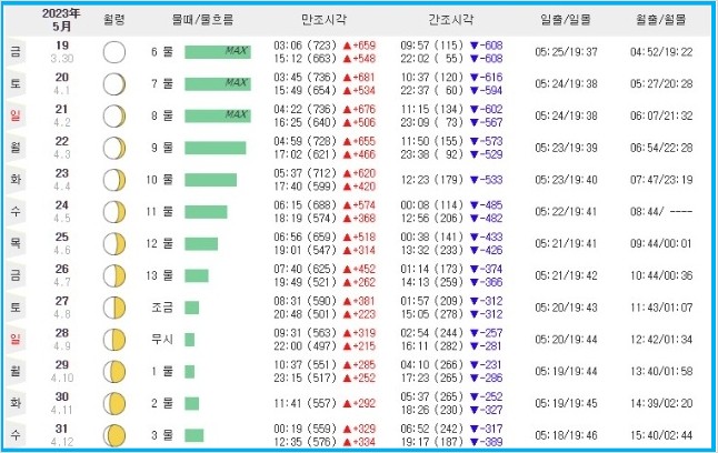◆ 물때 보는 법
