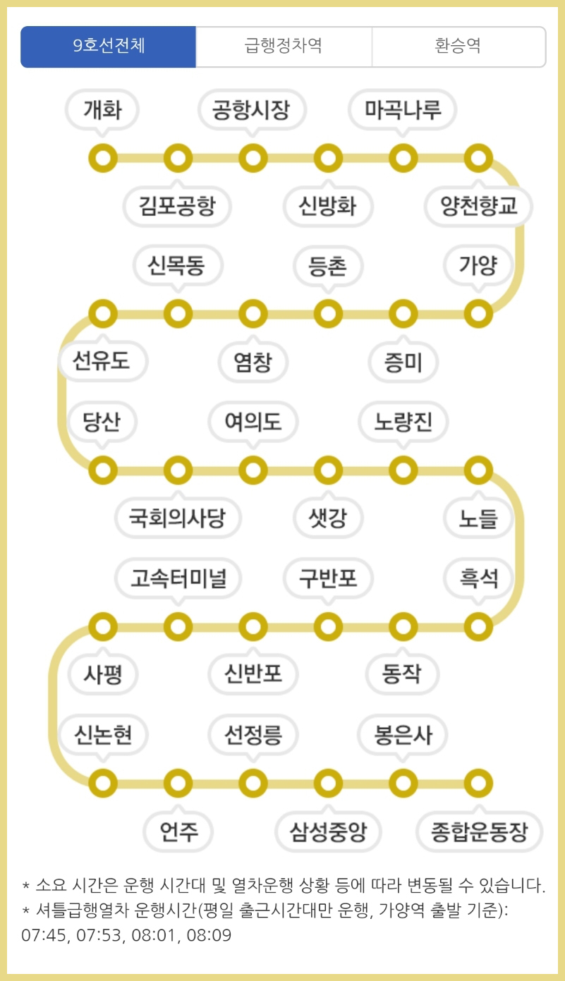 요즘 지하철을 가끔씩타고 다니면서 노선표에 대한 관심이 좀 생겼는데요. 궁금한 것이 생기면 꼭 알고 넘어가야하는 성격에 이번에는 9호선 급행정차역에 대해 알려드리려고 합니다.