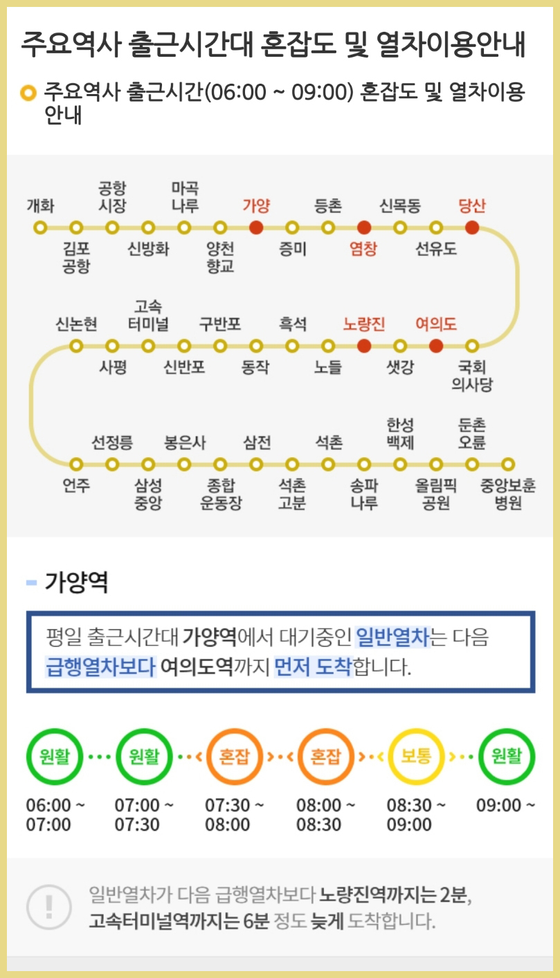 9호선의 혼잡도는 출근시간인 오전 7시30분부터 오전 8시 30분까지가 제일 붐비는데, 홈페이지에 들어가면 어떤 역이
