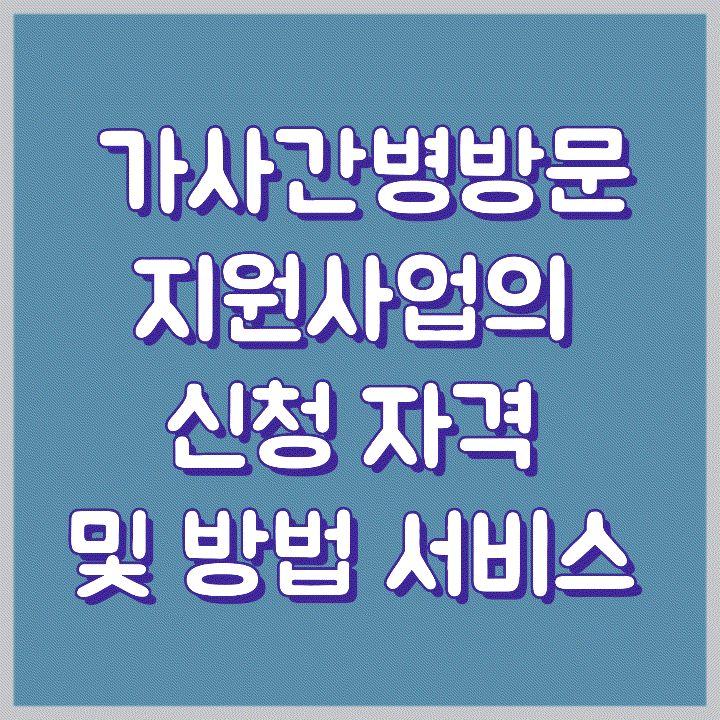 일상생활이 어려운 저소득층 이웃들의 가정을 직접 방문하여 여러 가지 서비스를 제공하는 사업으로 오늘은 가사간병방문지원사업의 신청 자격 및 방법, 서비스 내용에 대하여 알려드리려고 합니다.