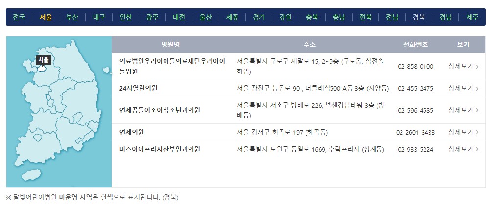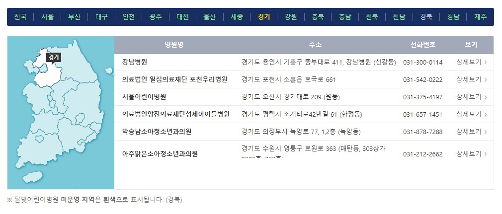 ◆ 전국에 위치한 달빛어린이병원 찾는 방법