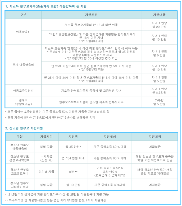 ■ 2021년 한부모혜택-아동양육비