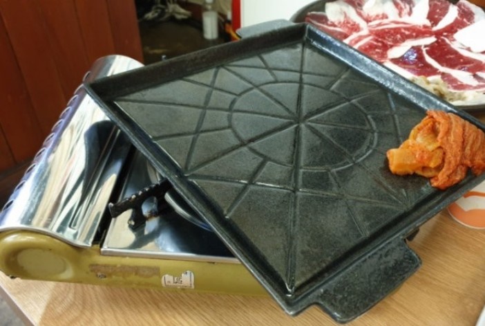 진대감 내부를 한번 보실까요? 안에는 의자에 앉아서 먹을 수 있는 테이블과 좌식테이블로 나누어 있어요. 서연이처럼 아이랑 함께 식사를 할 경우에는 의자보다는 좌식이 편한 편이라서 저는 좌식테이블에 앉았어요. 테이블에는 언제든 고기를 구울 수 있게 불판과 함께 세팅이 되어 있더라고요.