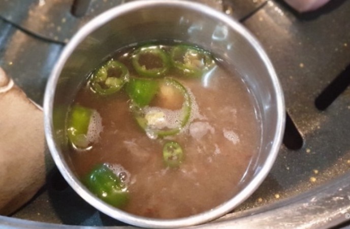 어쩜 하나도 타지 않고 이렇게 잘 구워질 수 있을까요? 고기의 윤기도 좌르르륵~ 저에 배웠잖아요 고기가 좋지 않으면 주변에 하얀 기름같이 생긴다고요 하지만 그렇지 않아요. 멜젓도 보글보글 끌고 참나무로 구워진 고기도 다 익어갑니다.