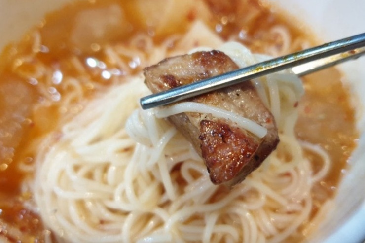 김치말이 국수도 기가 막히는데, 거기에 면과도 함께 먹고 이렇게 김치와 면을 같이도 먹어보았지요. 고기와 냉면을 같이 먹이 파는 가게도 있잖아요. 고기와 국수 또는 냉면이 잘 어울린다는 것인데 돈 사촌 노형점에 오시면 꼭 이렇게 드셔보세요!! 고기도 맛있고, 김치말이 국수도 맛있는데 같이 먹으니 진짜 진짜 맛있어요