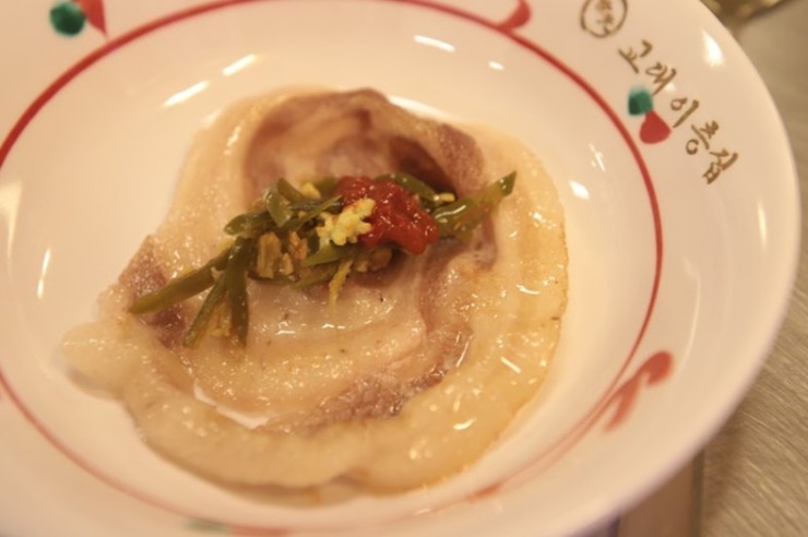 불판에 구워 조청에 찍어 먹는 쑥떡이에요  보통 구이떡으로는 하얀 쌀떡이 나오는데 이곳에서는 쑥떡이 나옵니다. 방앗간에서 직접 공수해 오시는 쑥떡이라는데 어릴 쩍 먹었던 쑥떡의 진한향이 입안에 가득 퍼집니다.  쫀득한지 불에 구우면 딱딱해질 줄 알았는데,  정말 쫀득한 쑥떡이에요 쑥떡을 조청에 찍어먹으니 서연이도 달콤하다고 잘 먹네요~진짜 진짜 쑥떡향이 진해요. 쑥떡도 추가 주문하면 1000원이에요