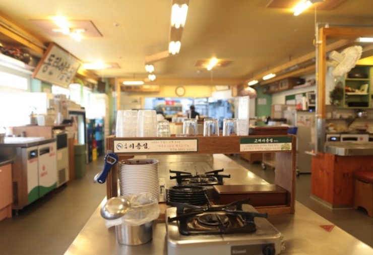 교대 이층 집은 여럿이 방문해도 테이블별로 떨어질 필요 없이 여럿이 둘러앉아 대화하기 좋은 테이블 구조로 되어 있어요. 왜 다들 회식을 하는지 알겠어요!! 더구나 매장 홀 내에 작은 주방(미니주방)이 있어요. 그래서  밑반찬이 떨어지면 빠르게 채워주는 서비스를 제공할 수 있고, 회식이나 모임을 왔을 때 이렇게 미니주방이 있으니 가정집에 와서 먹는 느낌도 날 것 같아요